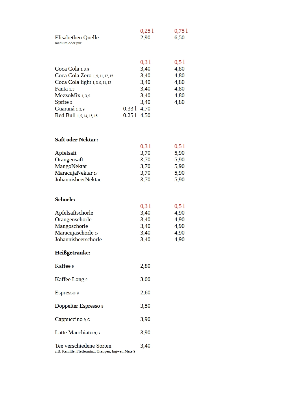Speisekarte